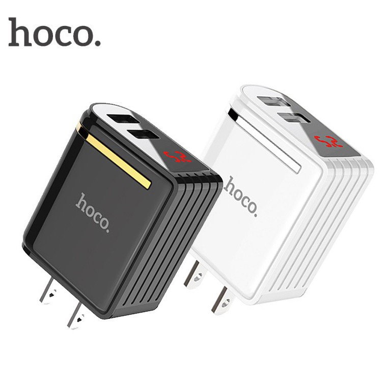 Cốc sạc 2 cổng Hoco C39 12W 2.4A - có LCD hiển thị điện áp dòng điện free ship